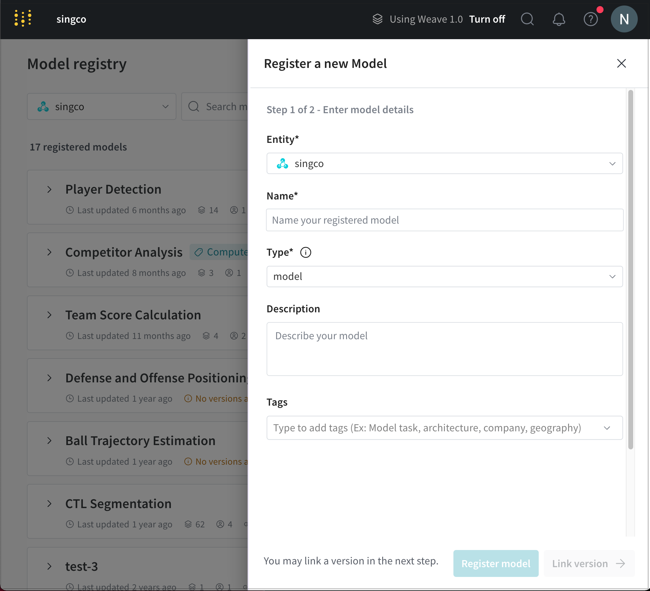 - Type ドロップダウンから、registered model とリンクするアーティファクトのタイプを選択します。